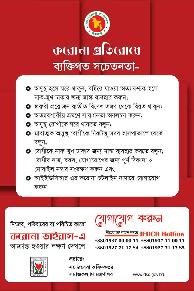 | ০২ | করোনা প্রতিরোধে সমাজসেবা অধিদফতরের সচেতনতামূলক পোস্টার | ১ ২ ৩ |